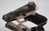 It is a combination of meticulous work executed by hand at first, aiming to remove the original non-slip prints of the frame making it totally smooth, to offer it in a second step but this time with the help of an extra fine laser a special stippling, that is both effective and comfortable for the shooter. Without neglecting the aesthetic touch that will transform the appearance of the weapon.