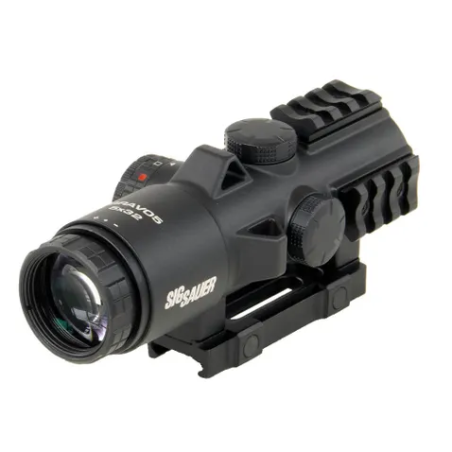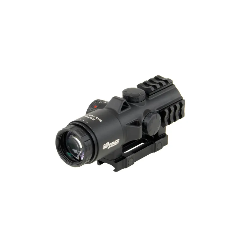 La SIG SAUER BRAVO5 (réf. SOB53102) est une lunette prismatique à grossissement fixe 5×, conçue pour offrir un compromis efficace entre rapidité d’acquisition et précision à moyenne distance. Elle s’adresse aux tireurs sportifs recherchant une optique robuste, compacte et adaptée aux plateformes modernes équipées de rails Picatinny.