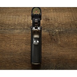 Ce modèle repose sur une glissière en acier de Damas inoxydable avec finition Heritage, chaque pièce présentant un motif unique. Il constitue une base cohérente pour le tir sportif exigeant ou un projet de personnalisation avancé.